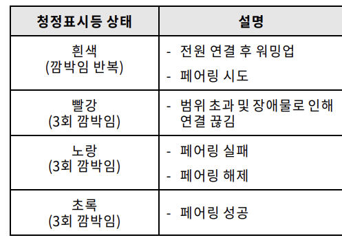 • 연결된 인공지능센서의 페어링 버튼을 3초 동안 누르면 등록된 기기가 삭제됩니다.